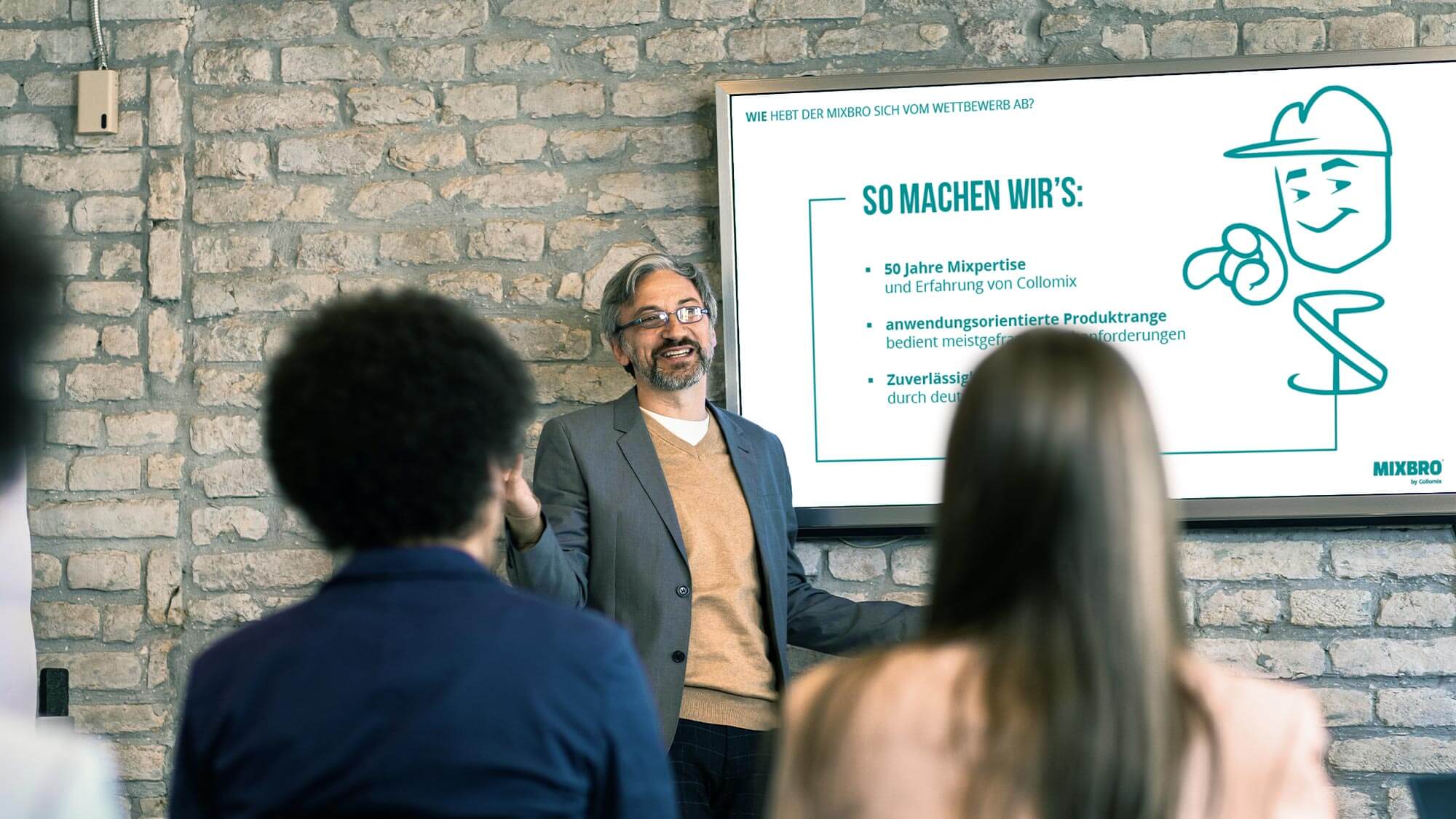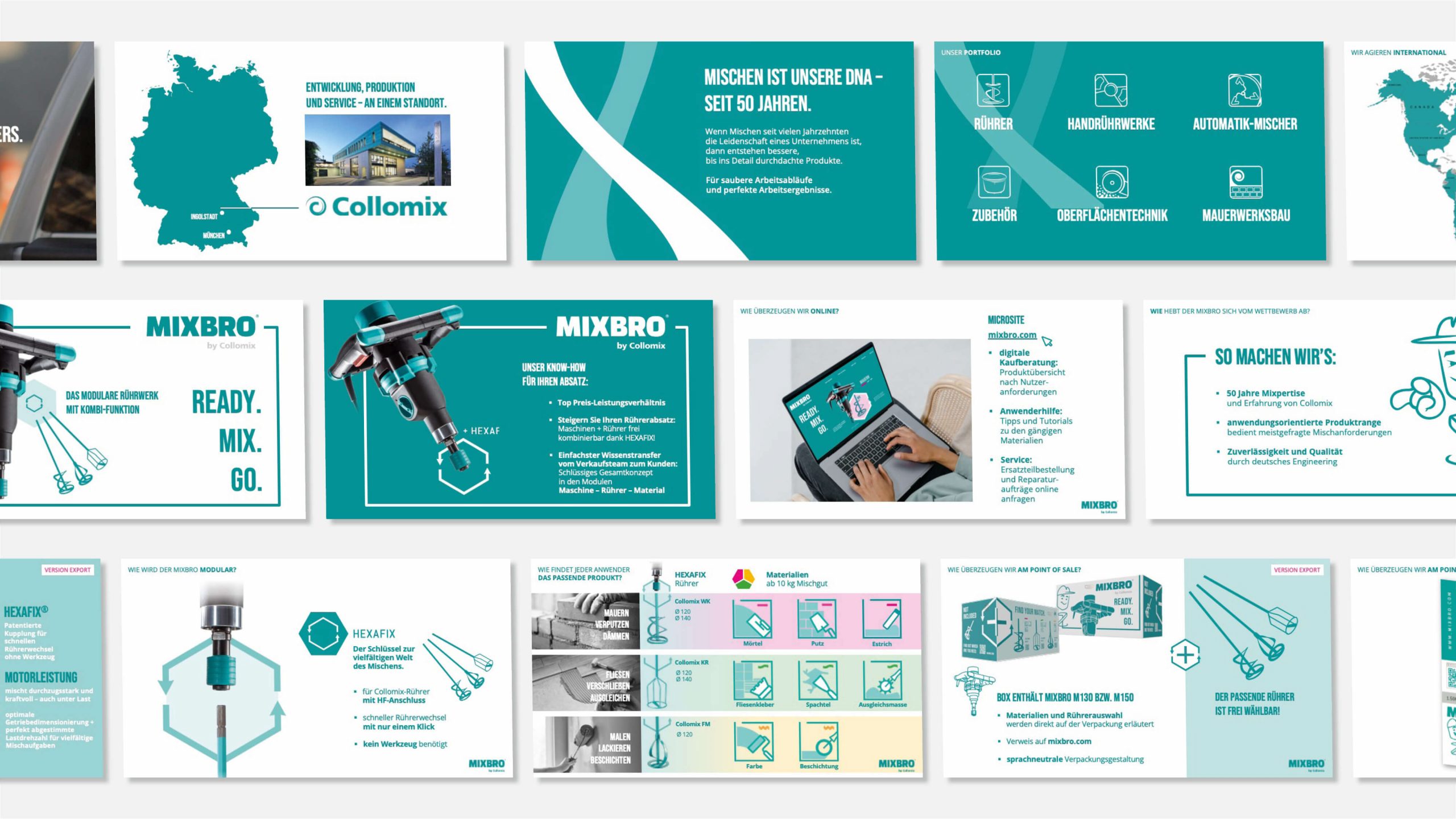 Mit unserer Präsentation bekommt das Sales Team eine Unterlage an die Hand, die bestehende Geschäftspartner in der bekannten Collomix-Welt abholt und gleichzeitig potentielle Neukunden in wenigen Worten an die europaweit etablierte Marke heranführt.