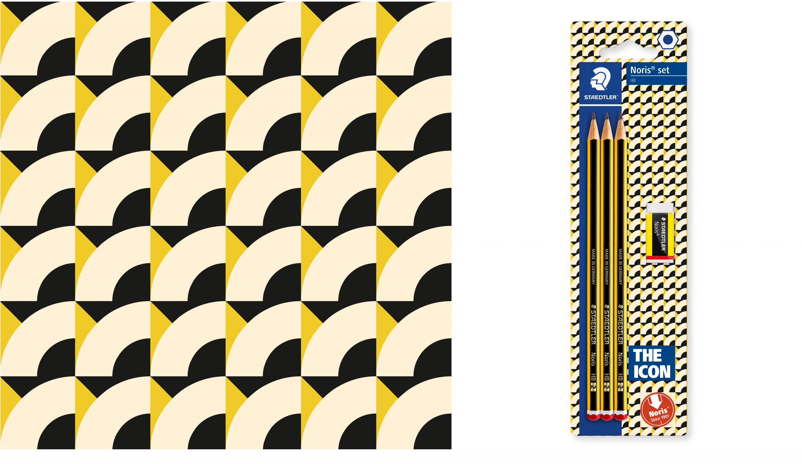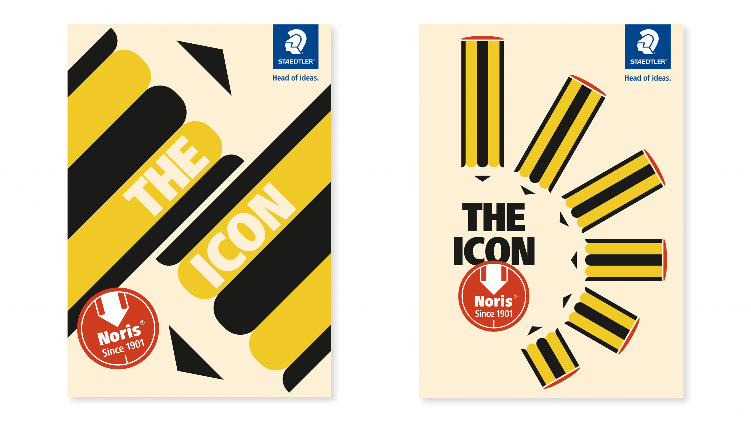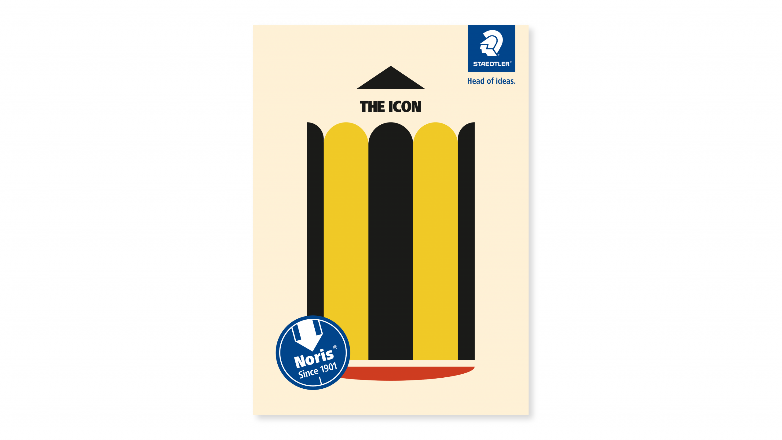 Manche Produkte sprechen für sich selbst – sie brauchen nur die passende Bühne. Der STAEDTLER Noris ist seit 1901 gelb-schwarz, unverändert und unverwechselbar. Anlässlich seines 125. Geburtstages haben wir die Kampagne „THE ICON“ konzipiert und visuell umgesetzt: ein Key Visual im klassischen Bauhaus-Stil, das die charakteristischen Farben und Formen des Noris konsequent in kraftvolle Grafik übersetzt. Klare Diagonalen, reduzierte Typografie, ikonisches Ergebnis. Das Visual wird kanalübergreifend ausgespielt – von Social-Media-Reels über Messestände und Displays bis hin zu Packaging und Give-Aways.